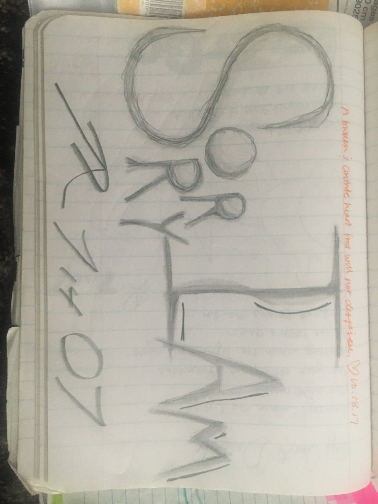 Winter 2018. I had questions for my future and this was the best way I could articulate it to God. Big, bold and a little disorderly. My prayer was written with desparate strokes of a black marker. The answer made itself clear. “I am the Shepherd.” I lightened up the right side of my drawing with a flicker of yellow dots and remembered I am His sheep. I will never want (Psalm 23).